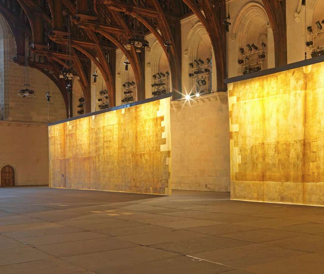 Back in the summer of 2016, I was fortunate enough to pay a visit to Westminster Hall at the Palace of Westminster (a UNESCO world heritage site) to see The Ethics of Dust. Commissioned and produced by Artangel, the exhibition by architectural preservation expert, turned artist – Jorge Otero-Pailos consisted of a 50-meter long and 6–meter high latex cast of the east wall, manifested from a restoration process designed to remove surface pollution from the walls of the hall itself. By spraying and then gently peeling off latex, Otero-Pailos had given the Hall a kind of ‘chemical peel’. And, like all such cosmetic procedures, it had become renewed through an intensive cleanse – lifting over 900 years of accumulated dirt, dust, soot, and grime from the limestone wall. The resulting cast, embedded with this dirt, once suspended from the roof adjacent to the east wall, exudes an ethereal radiance, when backlit from strategically positioned spotlights